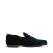 dress loafer features a velvet fabric face that gives the shoe a seamless design and a shimmery finish.